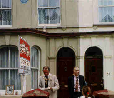 Hastings, councillor Graeme White unveil a plaque on 32 St James Road, Hastings